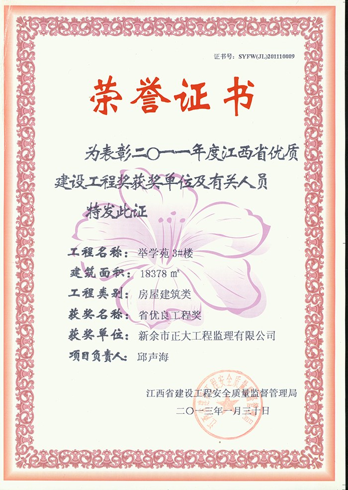新余市正大工程監(jiān)理有限公司依托新余市建筑設(shè)計(jì)院,于1995年11月成立,是新余市開(kāi)展監(jiān)理工作最早的監(jiān)理單位,本公司具有建設(shè)部核發(fā)的房屋建筑工程甲級(jí)監(jiān)理資質(zhì)、市政公用工程乙級(jí)監(jiān)理資質(zhì)、國(guó)家人防辦核發(fā)的人防工程監(jiān)理乙級(jí)資質(zhì)。我公司始終堅(jiān)持“客戶(hù)至上、質(zhì)量第一、信守合同”的經(jīng)營(yíng)理念;追求“為社會(huì)創(chuàng)造價(jià)值、為業(yè)主創(chuàng)造效益、為自身謀求發(fā)展”的經(jīng)營(yíng)宗旨;遵循“守法、誠(chéng)信、公正、科學(xué)、優(yōu)質(zhì)、高效”的工作原則,以雄厚的技術(shù)力量、完善的管理制度、豐富的監(jiān)理經(jīng)驗(yàn)、良好的企業(yè)信譽(yù)迅速成為我市監(jiān)理行業(yè)的一支新銳力量! 查看更多>>
